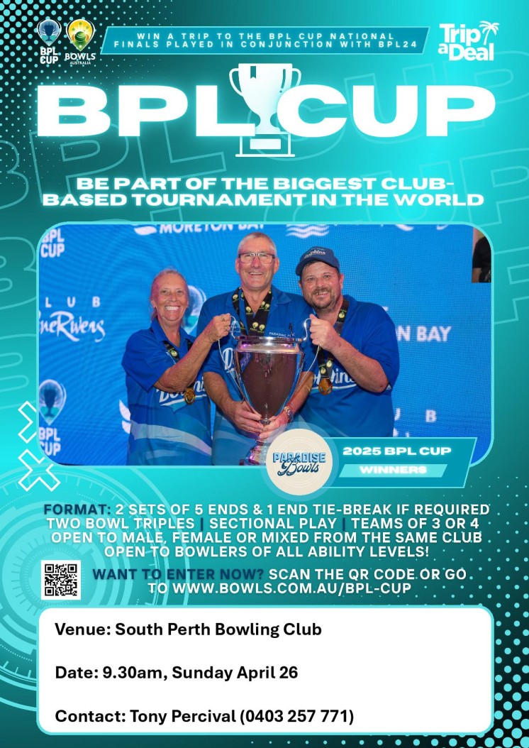 South Perth Bowling Club — Sunday 26 April — 9.30am — FLYER
